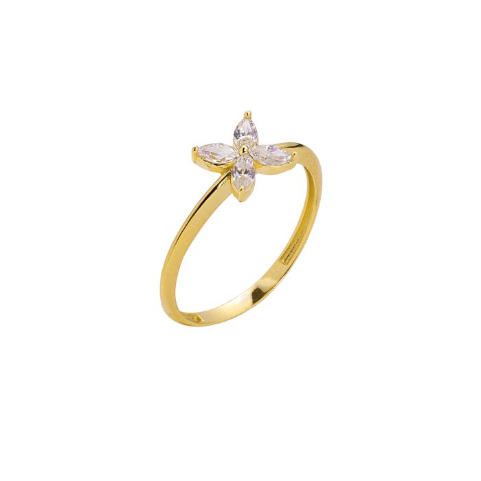 Ένα όμορφο δαχτυλίδι από Κίτρινο χρυσό 14 Καράτια με ζιργκόν.