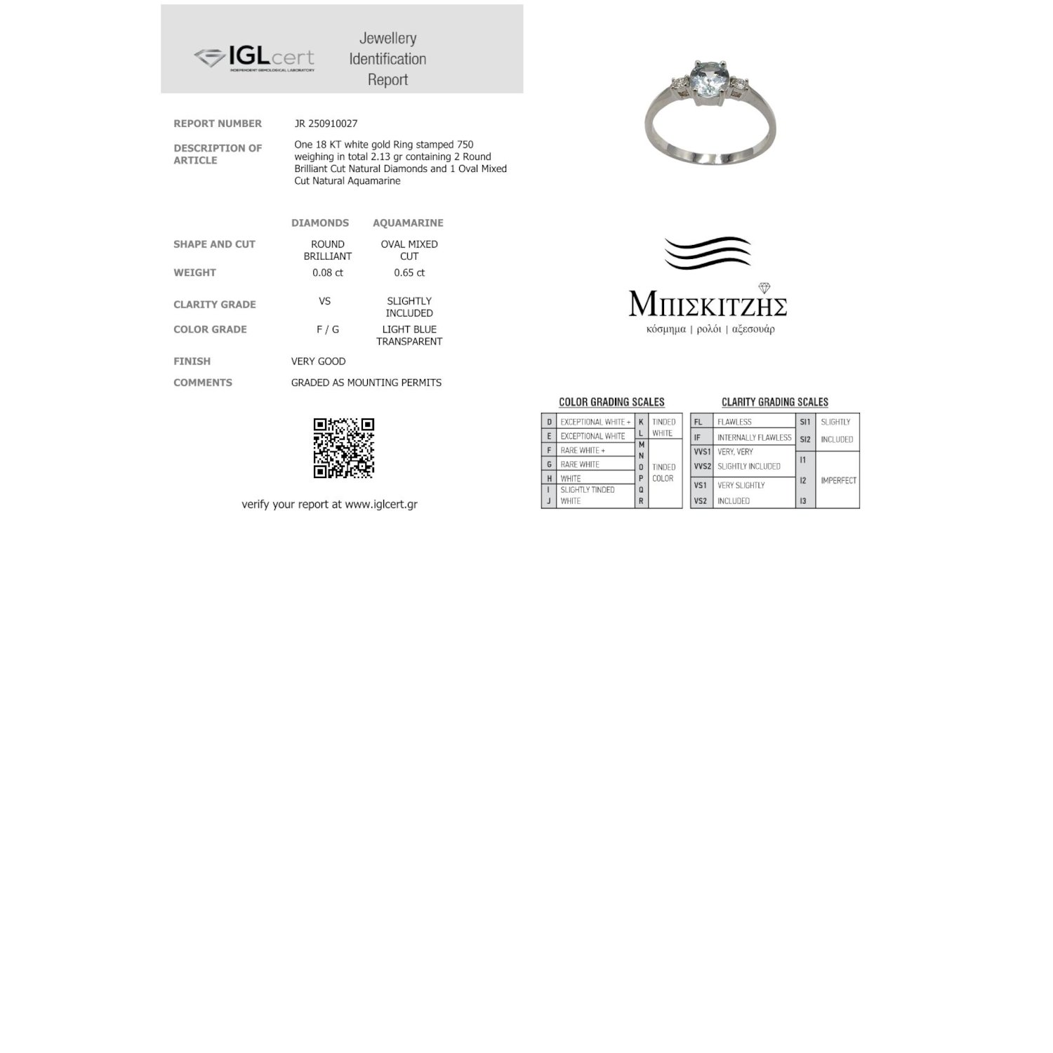 ΔΑΧΤΥΛΙΔΙ 18 ΚΑΡΑΤΙΑ ΛΕΥΚΟΧΡΥΣΟ ΜΕ ΔΙΑΜΑΝΤΙΑ ΚΑΙ ΟΒΑΛ AQUAMARINE 0111-DA257104
