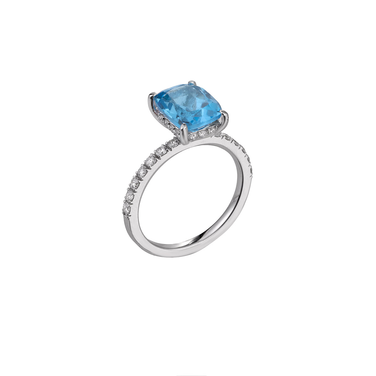 Ένα υπέροχο δαχτυλίδι από Λευκόχρυσο 18 Καράτια με διαμάντια σε κοπή Brilliant και Τοπάζι.