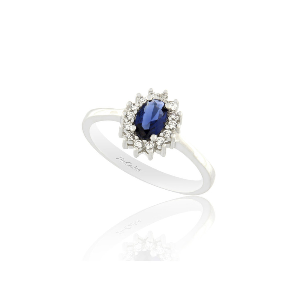 Ένα όμορφο δαχτυλίδι ροζέτα, της εταιρείας FaCad’oro, από Λευκόχρυσο 14 Καράτια με ζιργκόν.