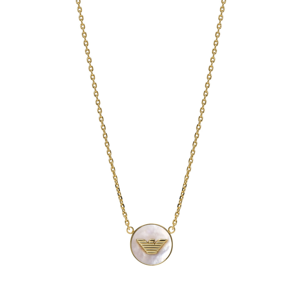 Κολιέ από την συλλογή Eagle Logo, του οίκου Emporio Armani, από επιχρυσωμένο ορείχαλκο, με φίλντισι και ζιργκόν.
