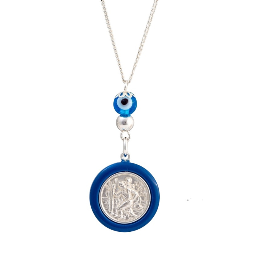 Φυλαχτό αυτοκινήτου από επιπλατινωμένο ασήμι 925° με ματάκι.