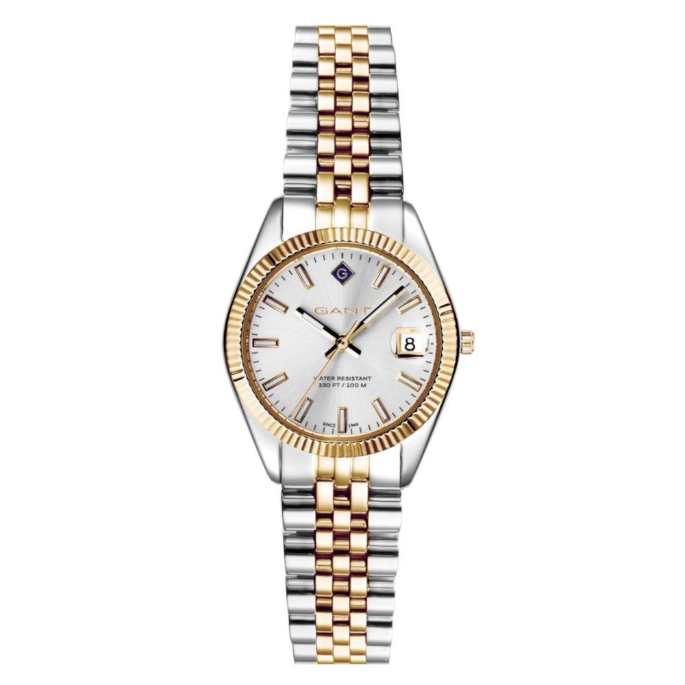 Ένα ρολόι της σειράς Sussex Mini, του οίκου Gant, από ανοξείδωτο ατσάλι και επιχρυσωμένο ανοξείδωτο ατσάλι με ασημί καντράν.