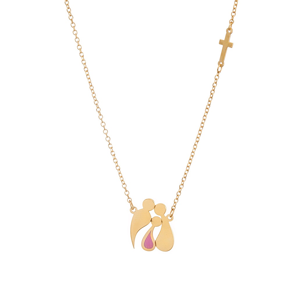 Ένα πανέμορφο κολιέ οικογένεια από Κίτρινο χρυσό 14 Καράτια με σμάλτο.