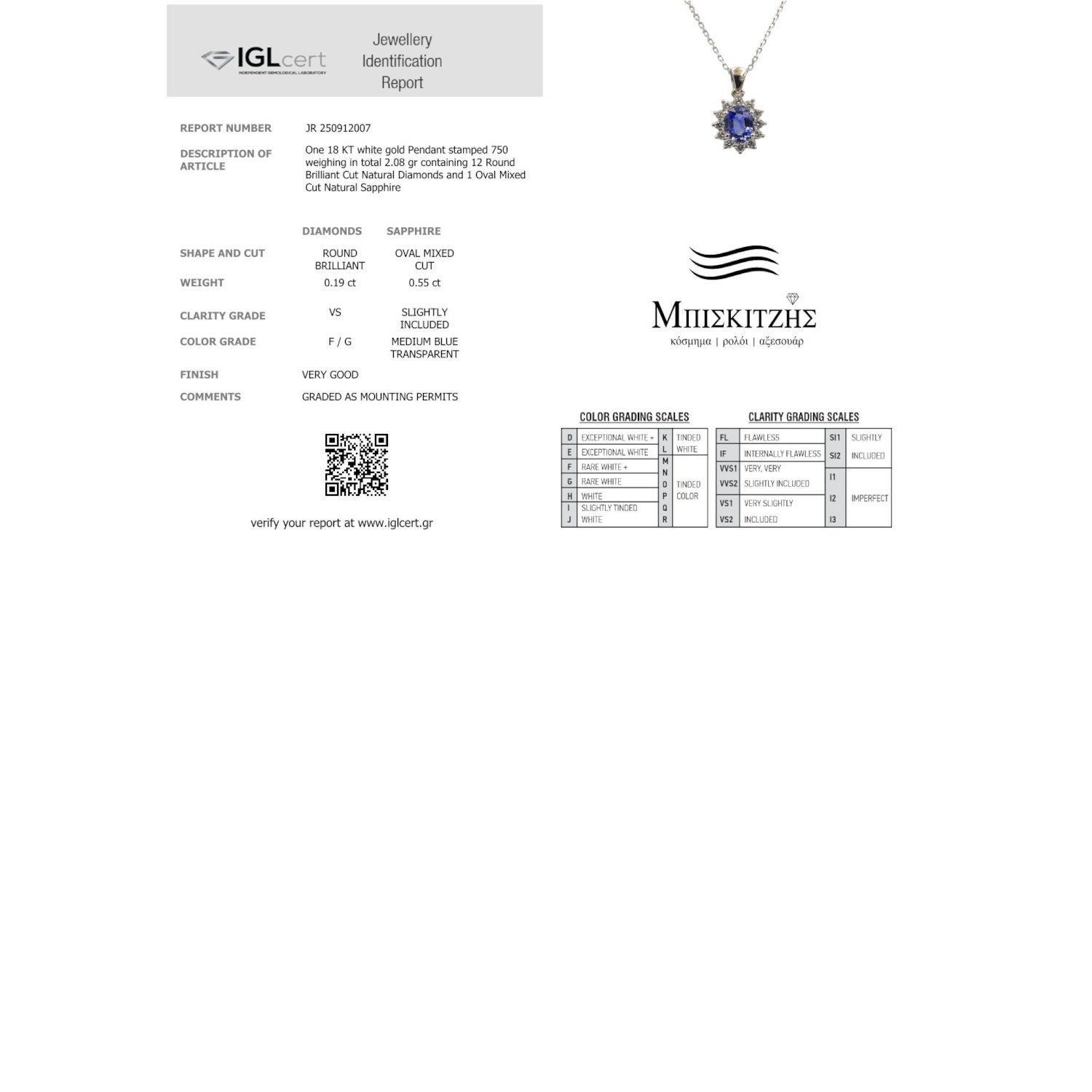Ετικέτες: 18Κ, Brilliant, Διαμάντι, Ζαφείρι, Κολιέ, Λευκόχρυσος