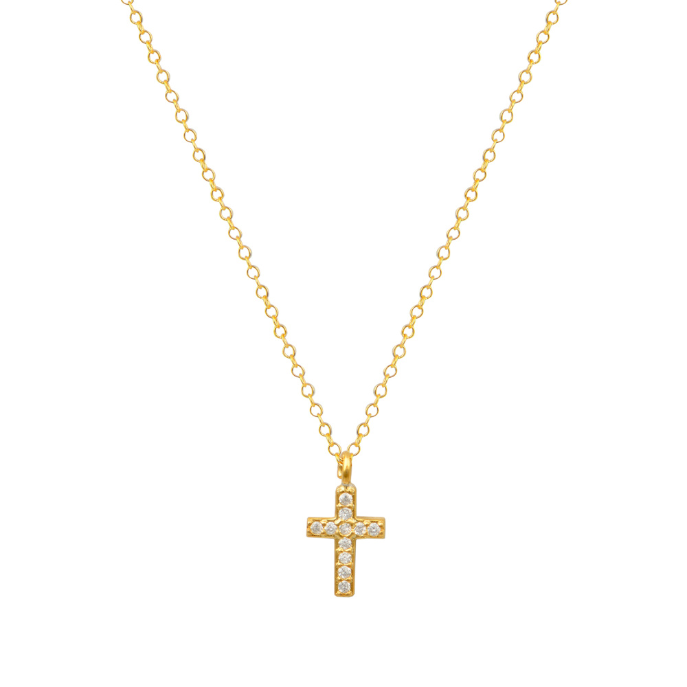Ένα υπέροχο κολιέ με σταυρουδάκι, από κίτρινο επιχρυσωμένο ασήμι 925° με ζιργκόν.