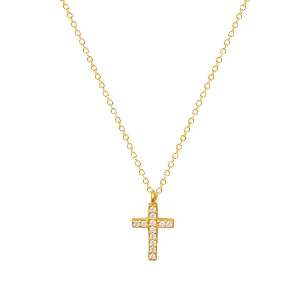 Ένα υπέροχο κολιέ με σταυρουδάκι, από κίτρινο επιχρυσωμένο ασήμι 925° με ζιργκόν.