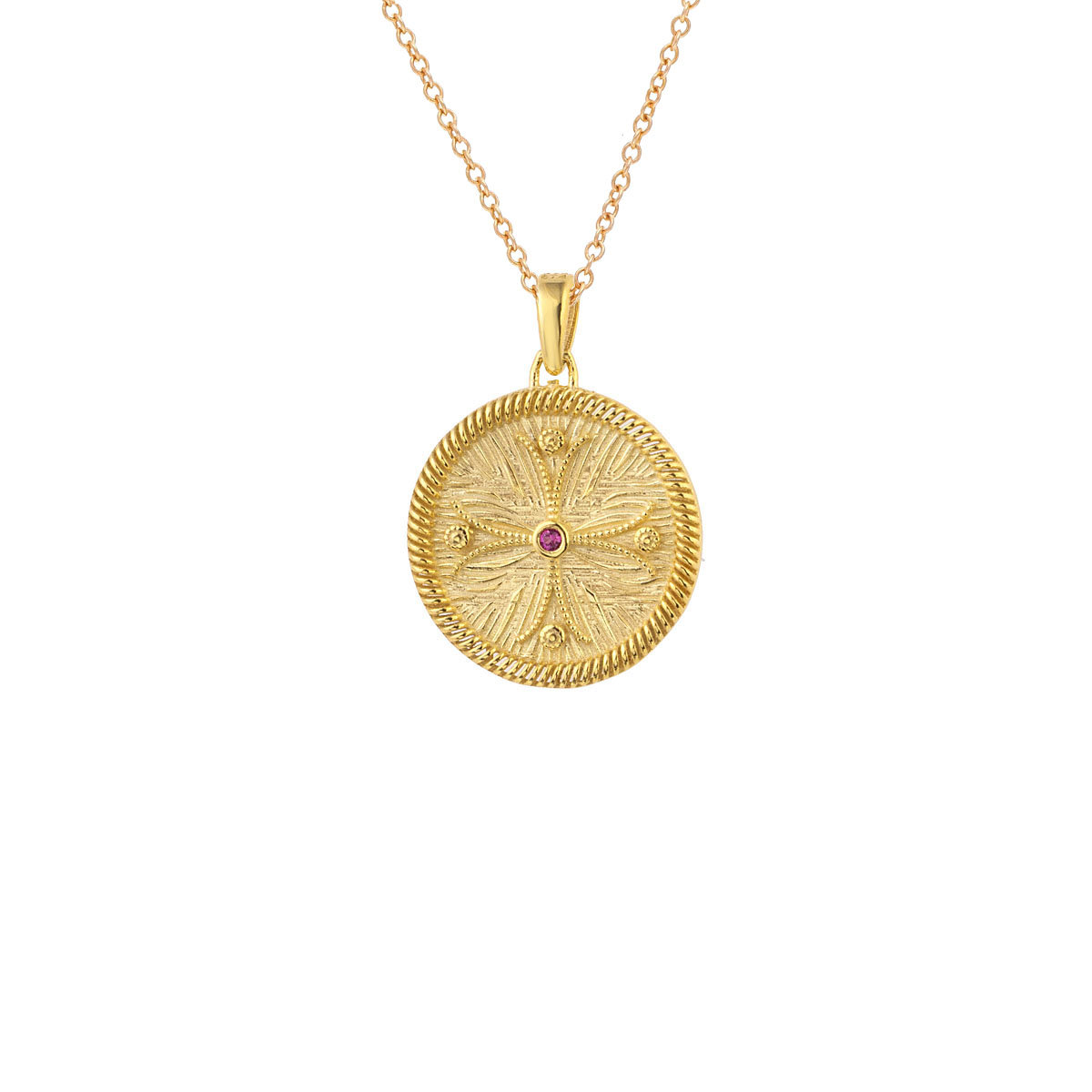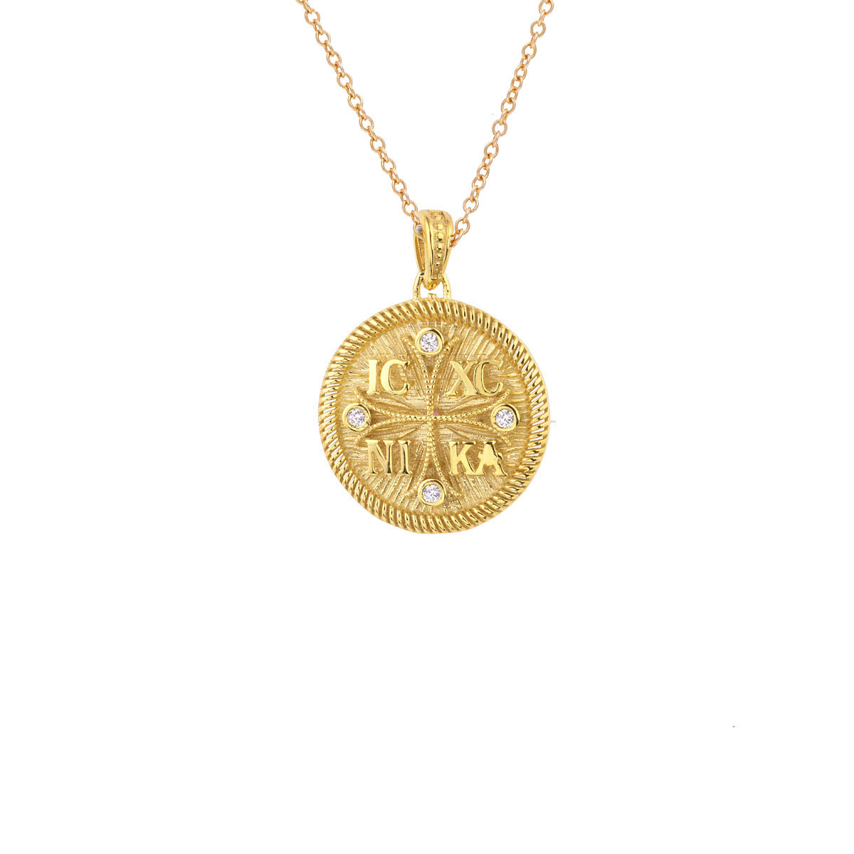 Ένα ξεχωριστό κολιέ Κωνσταντινάτο διπλής όψεως, από Κίτρινο χρυσό 9 Καράτια με ζιργκόν.