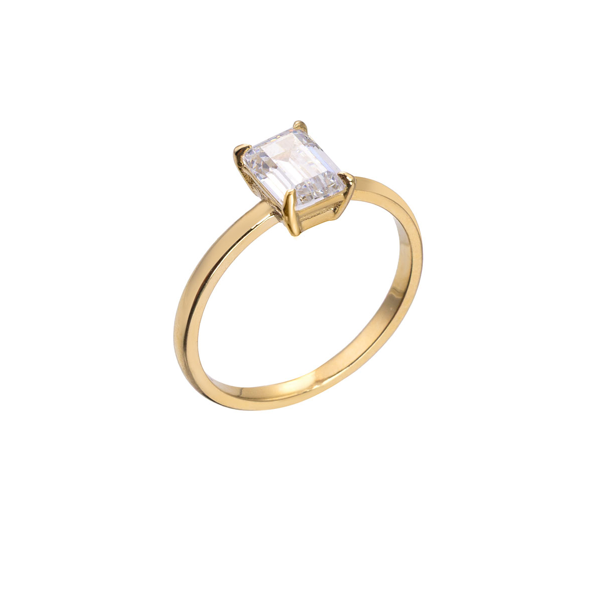 Μονόπετρο δαχτυλίδι από Κίτρινο χρυσό 14 Καράτια, με τετράγωνο ζιργκόν.