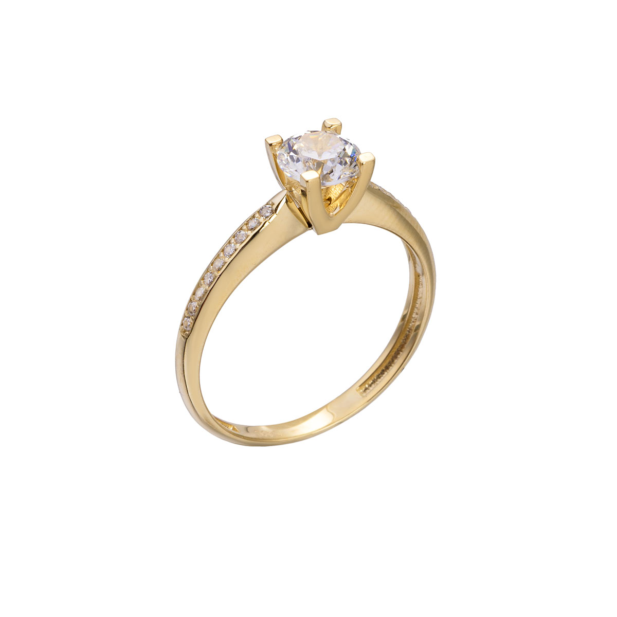 Μονόπετρο δαχτυλίδι από Κίτρινο χρυσό 14 Καράτια με ζιργκόν.