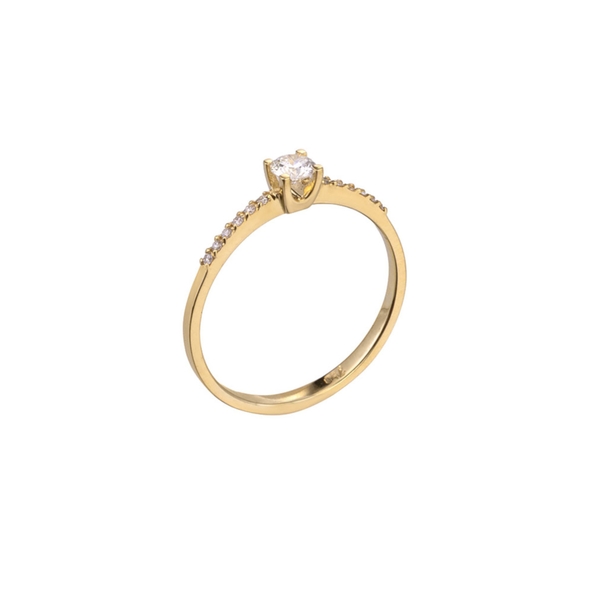 Μονόπετρο δαχτυλίδι από Κίτρινο χρυσό 18 Καράτια με διαμάντια σε κοπή Brilliant.