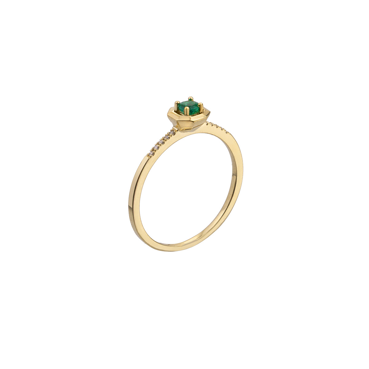 Μονόπετρο δαχτυλίδι από Κίτρινο χρυσό 18 Καράτια με Σμαράγδι και διαμάντια σε κοπή Brilliant.