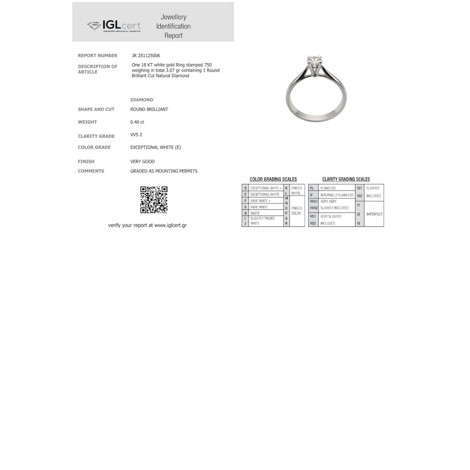 Μονόπετρο δαχτυλίδι από Λευκόχρυσο 18 Καράτια με διαμάντι σε κοπή Brilliant.