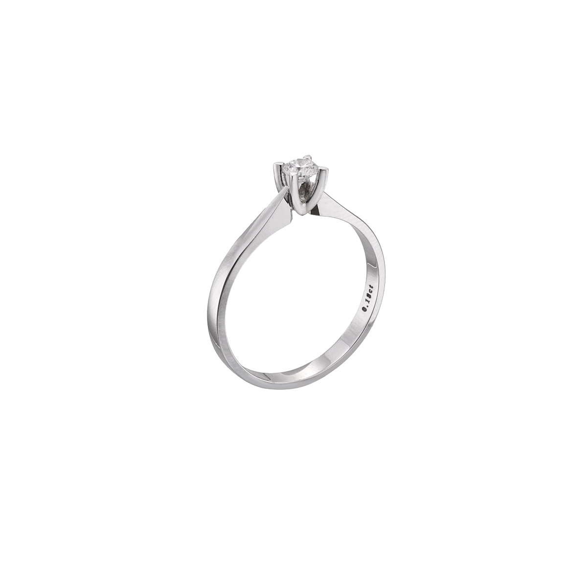 Μονόπετρο δαχτυλίδι από Λευκόχρυσο 18 Καράτια με διαμάντι σε κοπή Brilliant.