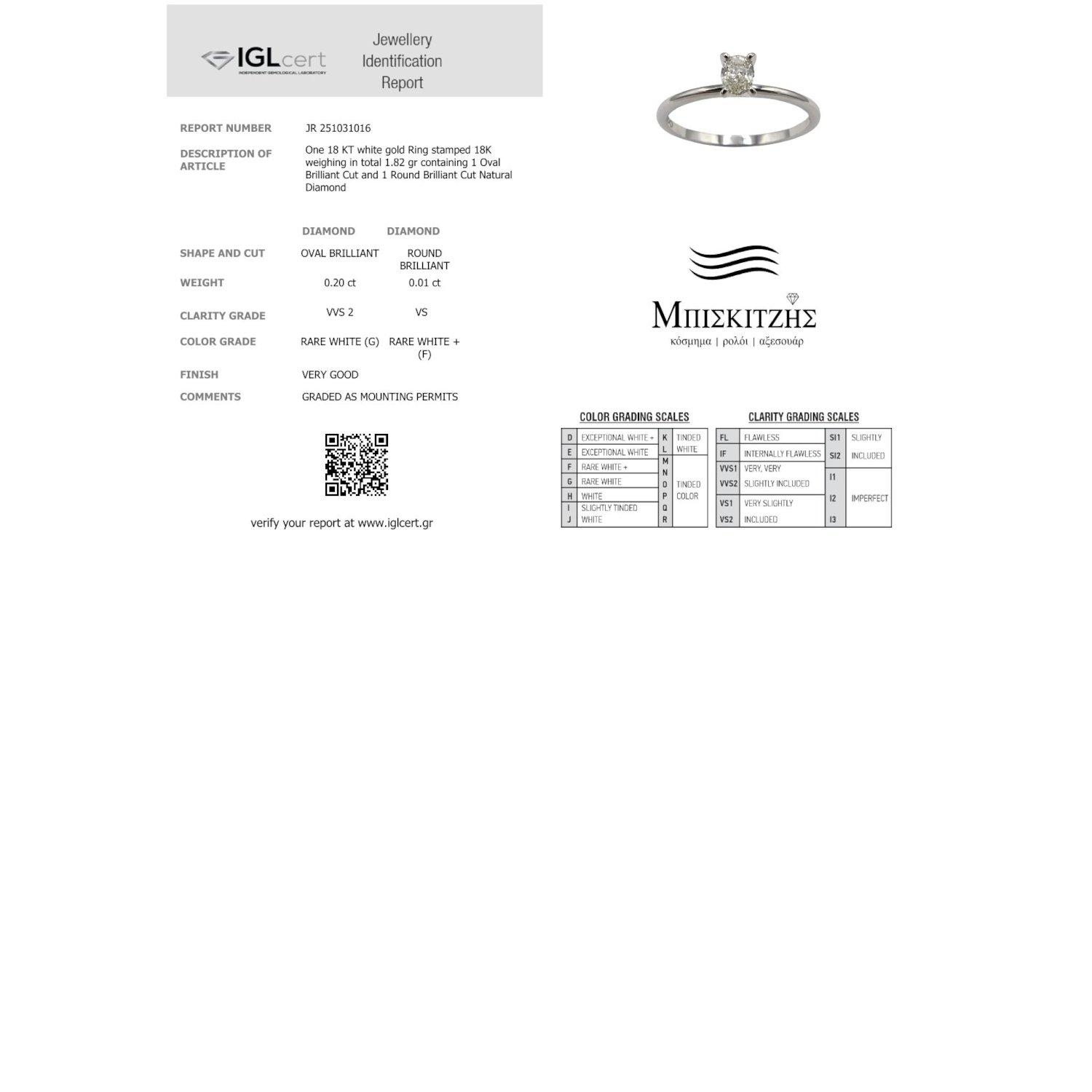 Μονόπετρο δαχτυλίδι από Λευκόχρυσο 18 Καράτια με οβάλ διαμάντι σε κοπή Brilliant.