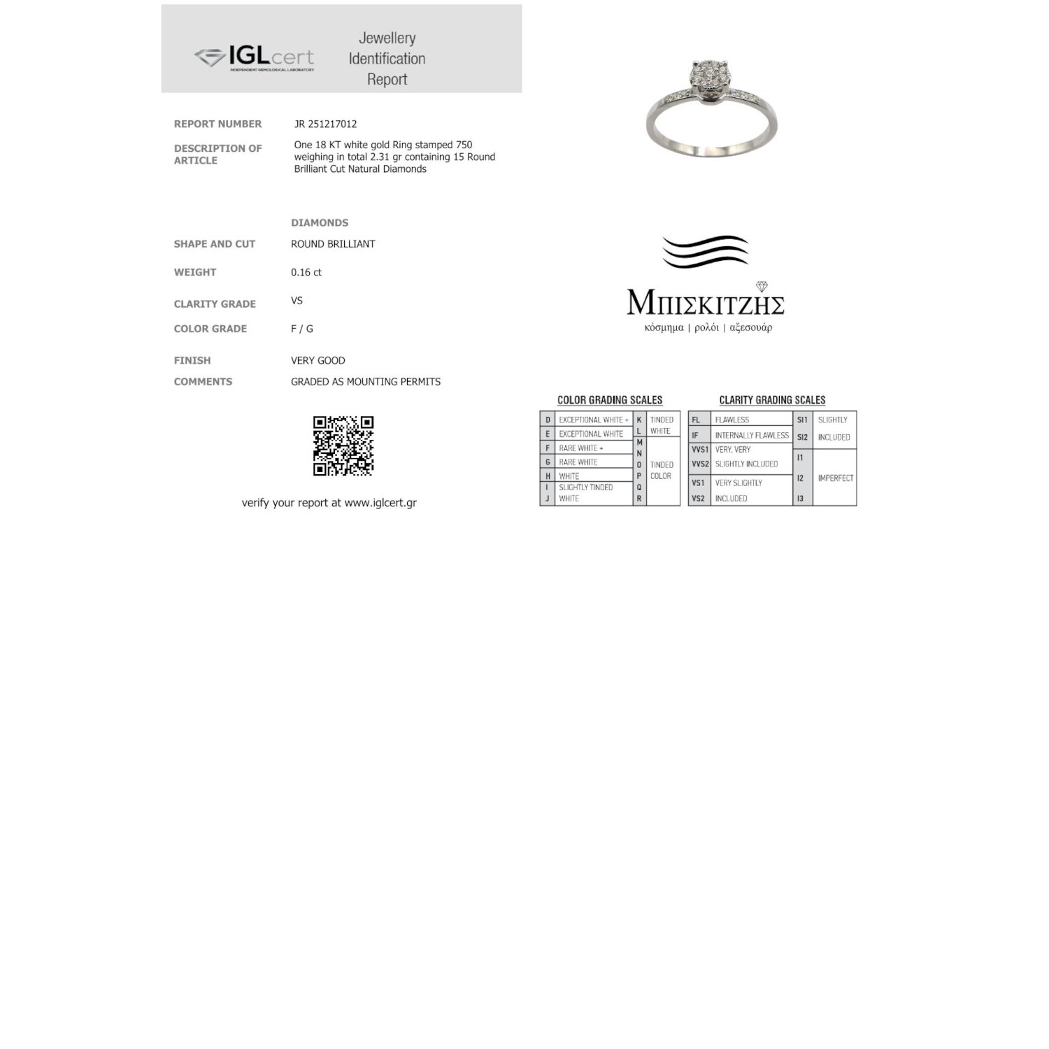 → Συνοδεύεται από πιστοποιητικό, της DIAMONDJOOLS, με διεθνή πιστοποίηση από το Ινστιτούτο International Gemological Institute (I.G.I.) και από IGLcert (Independent Gemological Laboratory).