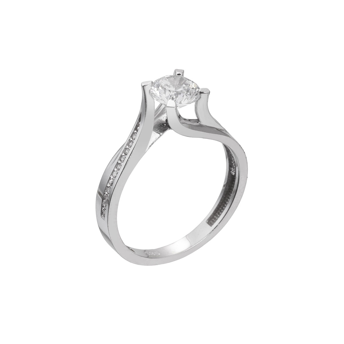 Μονόπετρο δαχτυλίδι φλόγα, από Λευκόχρυσο 14 Καράτια με ζιργκόν.