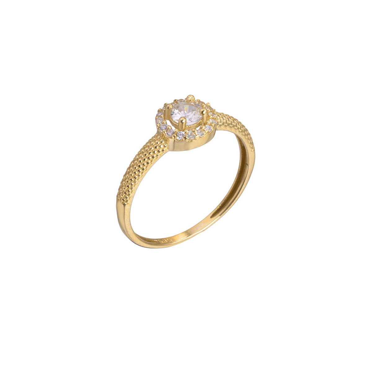 Μονόπετρο δαχτυλίδι ροζέτα, από Κίτρινο χρυσό 14 Καράτια, με ζιργκόν.