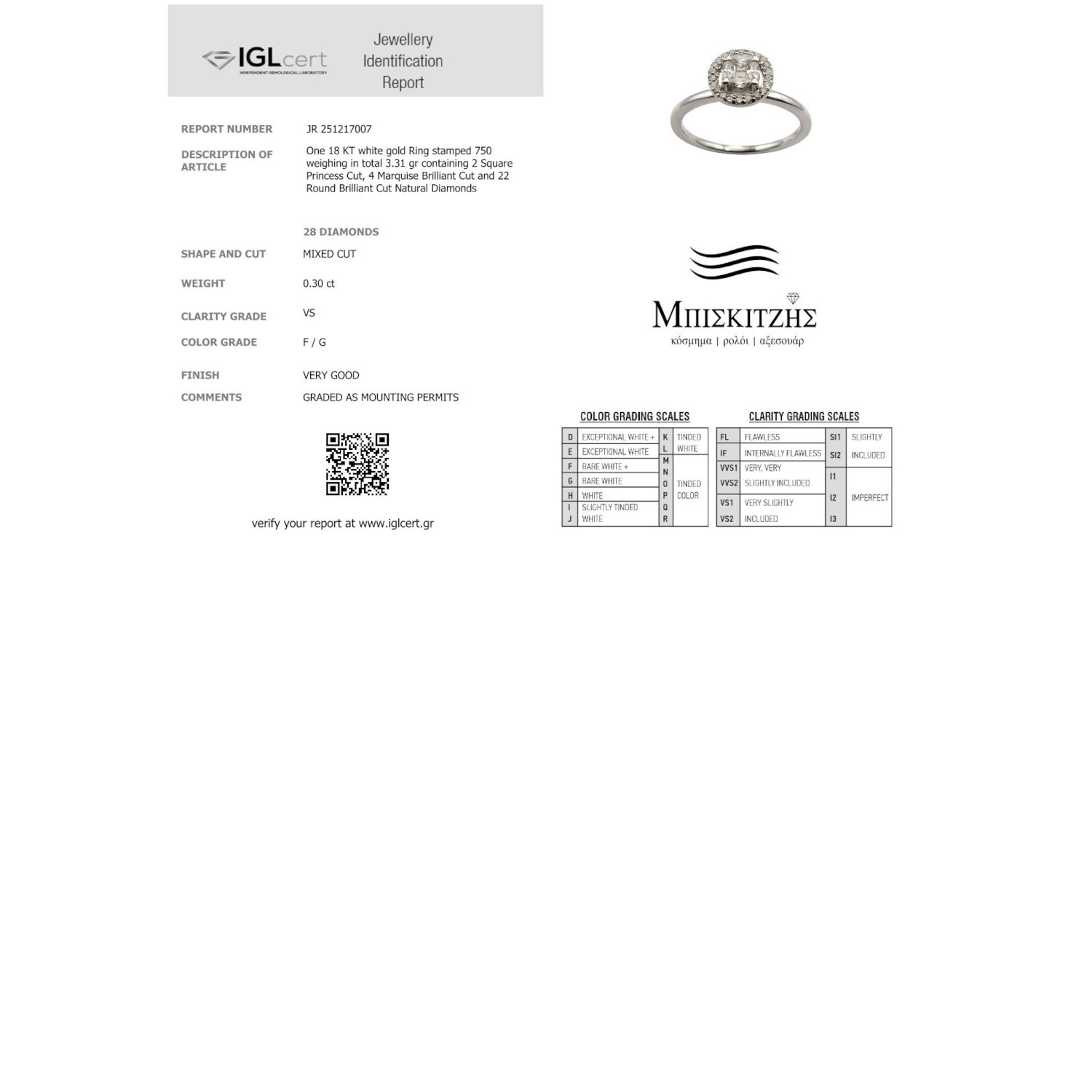 Μονόπετρο δαχτυλίδι από Λευκόχρυσο 18 Καράτια με διαμάντια σε κοπή Brilliant.