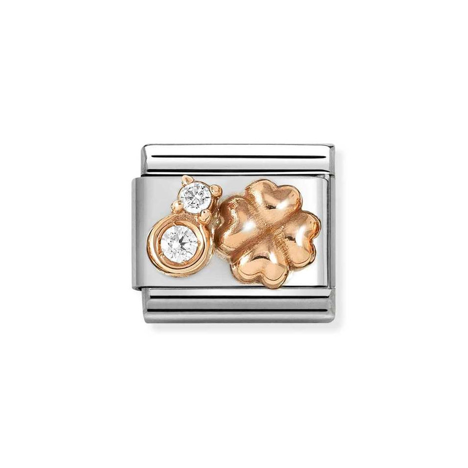 NOMINATION COMPOSABLE CLASSIC LINK FOUR-LEAF CLOVER IN 9K ROSE GOLD WITH CZ 430305/52