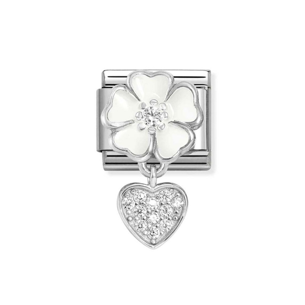 NOMINATION COMPOSABLE CLASSIC LINK WHITE FLOWER WITH HEART IN STERLING SILVER 331814/04