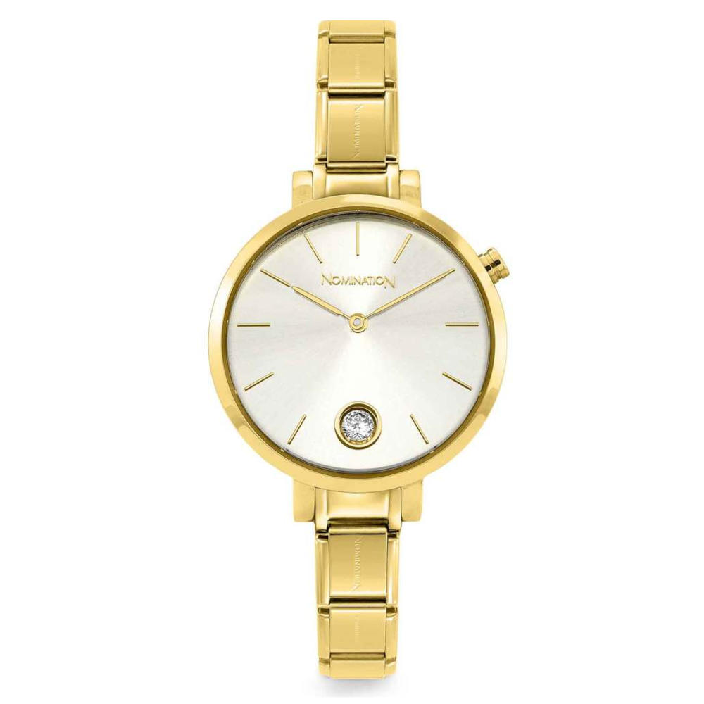 Ένα ρολόι, της σειράς Paris, του οίκου Nomination, από επιχρυσωμένο ανοξείδωτο ατσάλι με ασημί καντράν και ζιργκόν. Με Composable μπρασελέ, το οποίο μπορείτε να το εξατομικεύσετε.