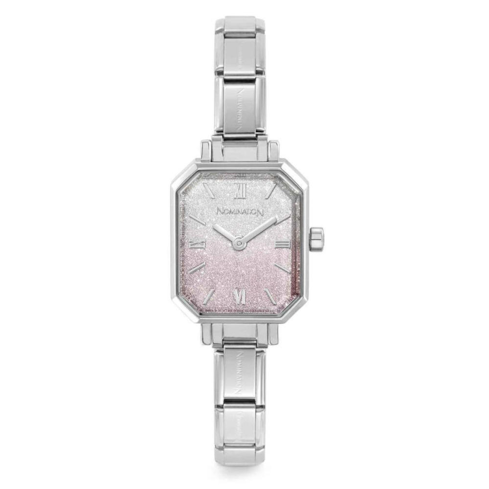 Ένα ρολόι, της σειράς Paris, του οίκου Nomination, από ανοξείδωτο ατσάλι, με γκλίτερ στο καντράν. Με Composable μπρασελέ, το οποίο μπορείτε να το εξατομικεύσετε.