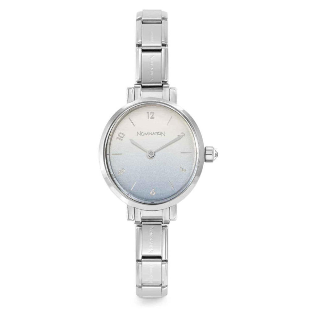 Ένα ρολόι, της σειράς Paris, του οίκου Nomination, από ανοξείδωτο ατσάλι, με γαλάζιο καντράν. Με Composable μπρασελέ, το οποίο μπορείτε να το εξατομικεύσετε.