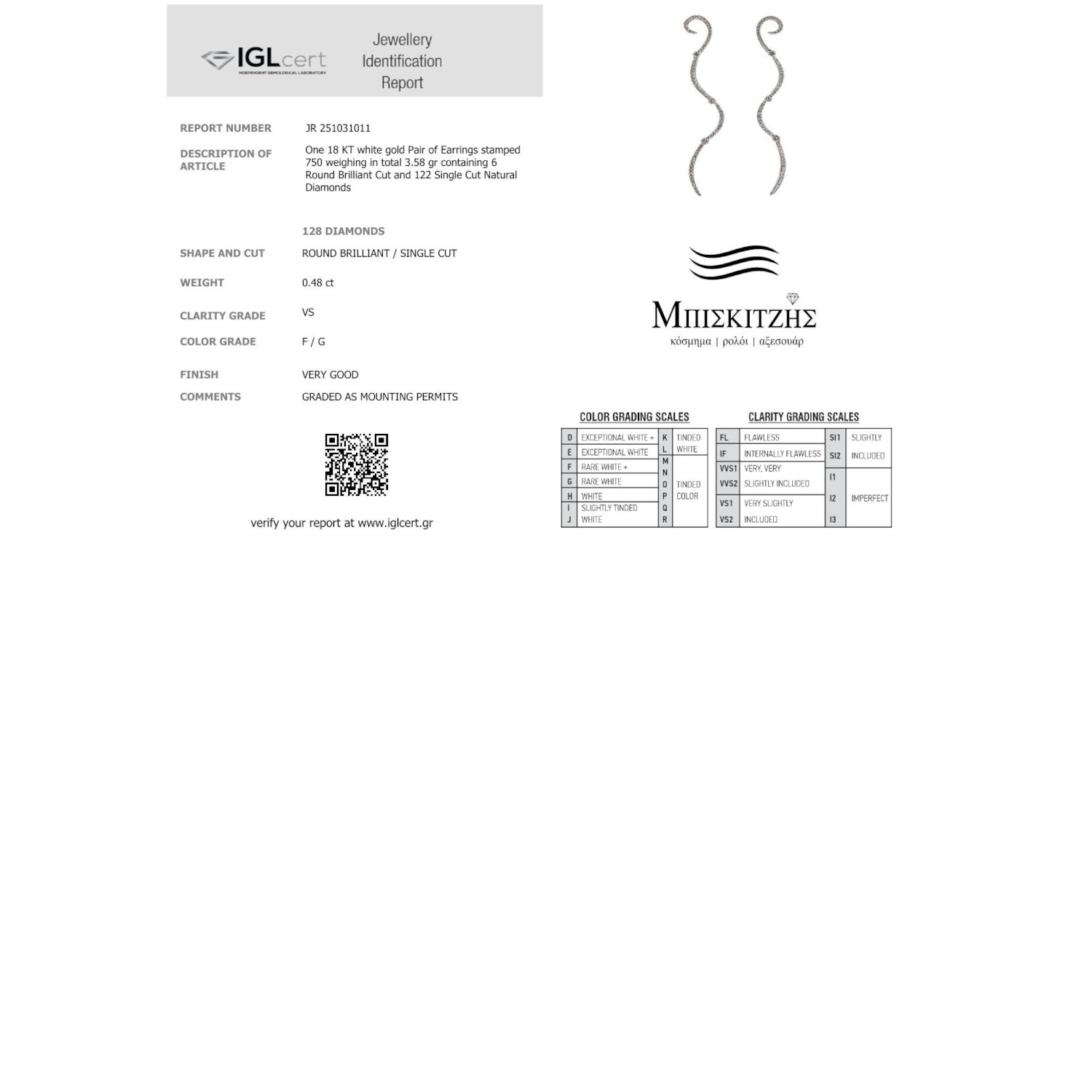 Ένα υπέροχο ζευγάρι νυφικά σκουλαρίκια, από Λευκόχρυσο 18 Καράτια με διαμάντια σε κοπή Brilliant.