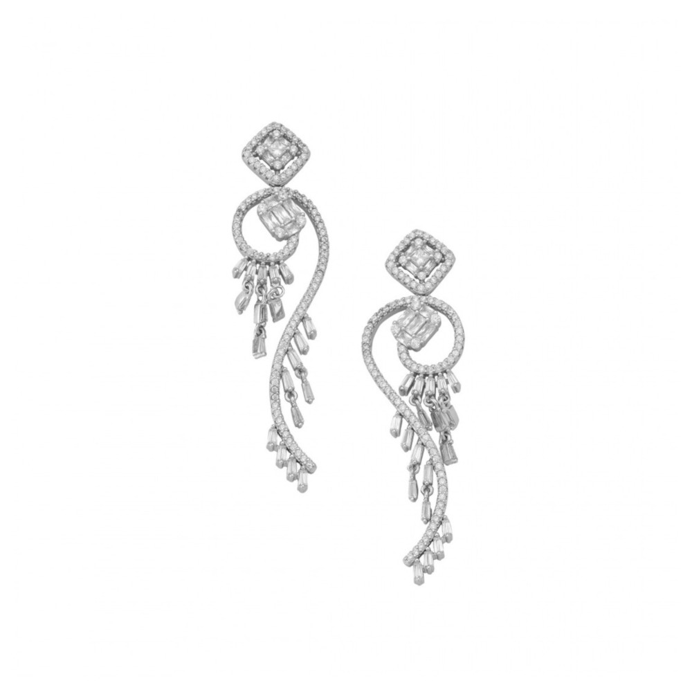 Ένα εντυπωσιακό ζευγάρι νυφικά σκουλαρίκια, από επιπλατινωμένο ασήμι 925° με ζιργκόν.