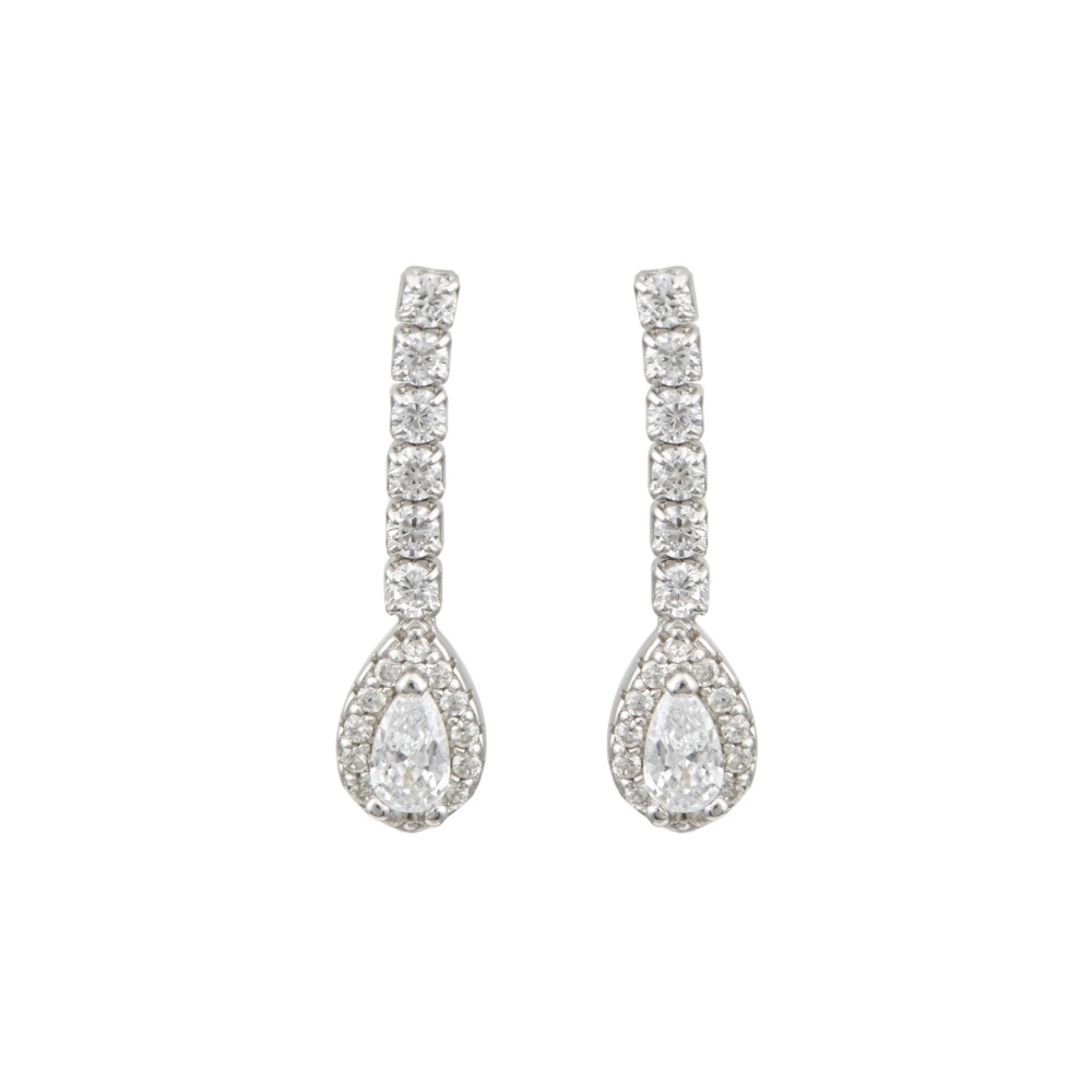 Ένα εντυπωσιακό ζευγάρι νυφικά σκουλαρίκια, από επιπλατινωμένο ασήμι 925° με ζιργκόν.