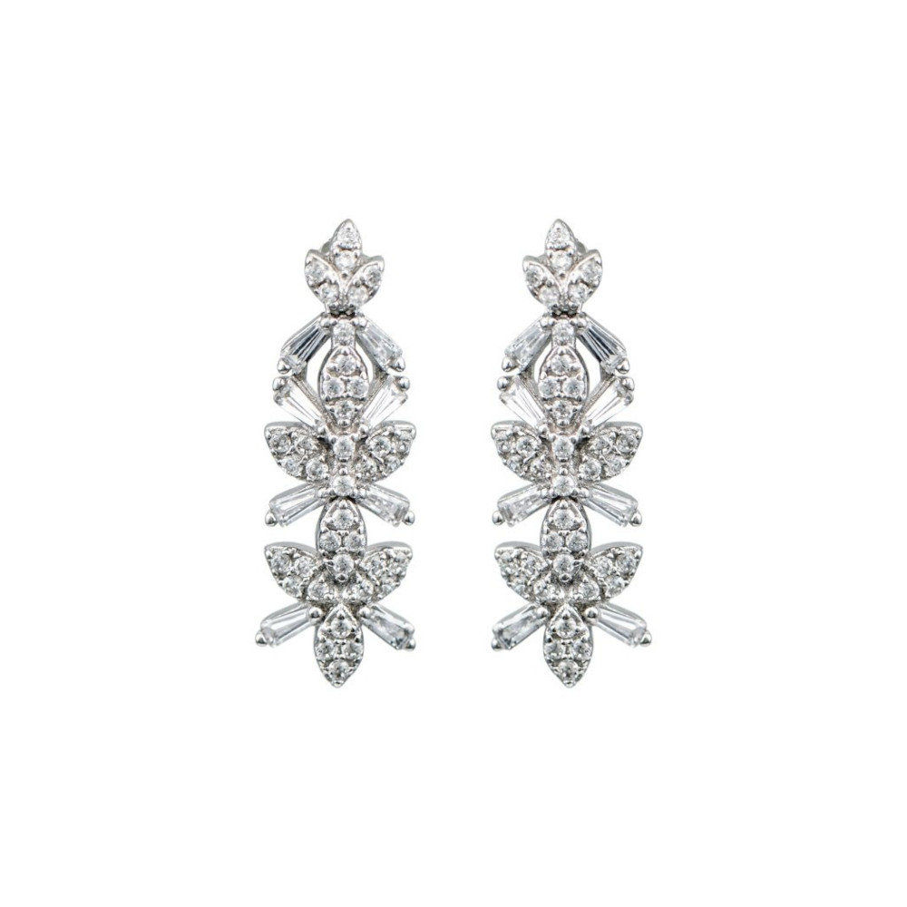 Ένα εντυπωσιακό ζευγάρι νυφικά σκουλαρίκια, από επιπλατινωμένο ασήμι 925° με ζιργκόν.