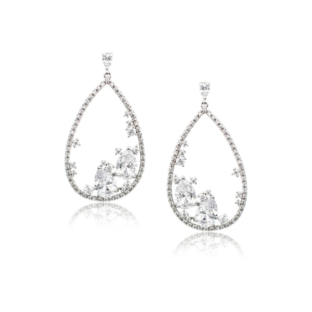 Ένα εντυπωσιακό ζευγάρι νυφικά σκουλαρίκια, από επιπλατινωμένο ασήμι 925° με ζιργκόν.