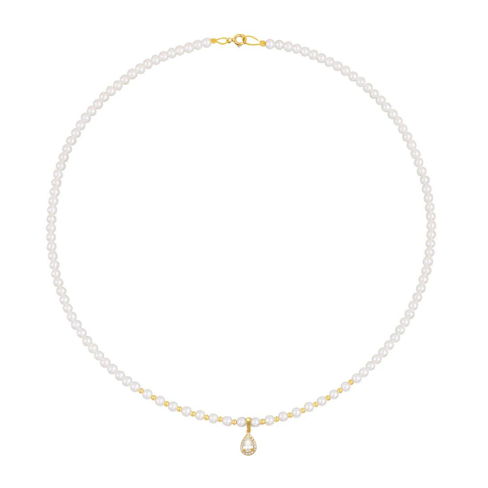 Ένα υπέροχο κολιέ από μαργαριτάρια του γλυκού νερού με Κίτρινο χρυσό 14 Καράτια και ζιργκόν.