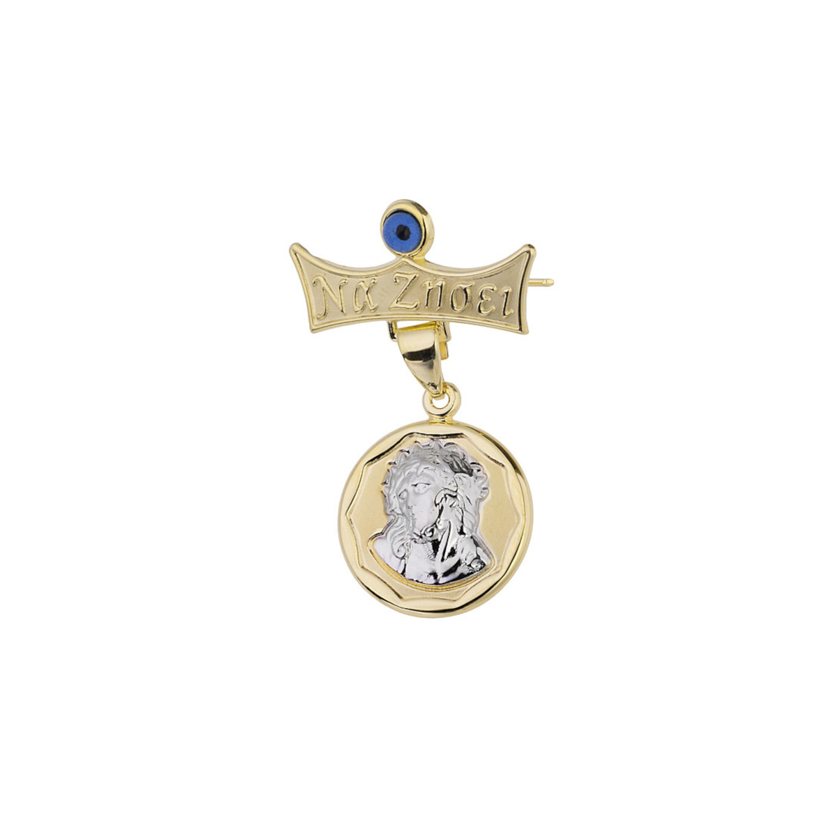 Μια όμορφη παραμάνα με κρεμαστό φυλαχτό, από Κίτρινο χρυσό και Λευκόχρυσο 9 Καράτια και ματάκι. Ιδανικό δώρο για νεογέννητο.
