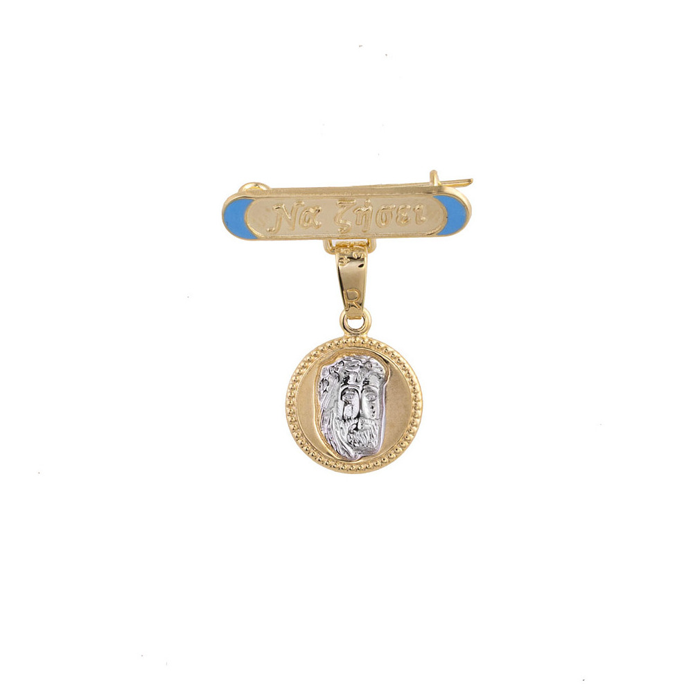 Μια όμορφη παραμάνα με κρεμαστό φυλαχτό από Κίτρινο χρυσό και Λευκόχρυσο 9 Καράτια, με σμάλτο. Ιδανικό δώρο για νεογέννητο.