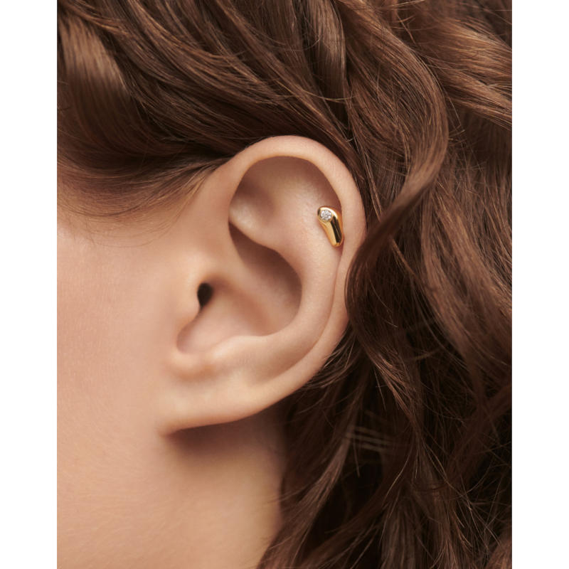 Σκουλαρίκι μονό από τη συλλογή Essentials, της εταιρείας PDPAOLA, από ασήμι 925°, επιχρυσωμένο με 18 Καράτια Κίτρινο χρυσό, διακοσμημένο με ζιργκόν.