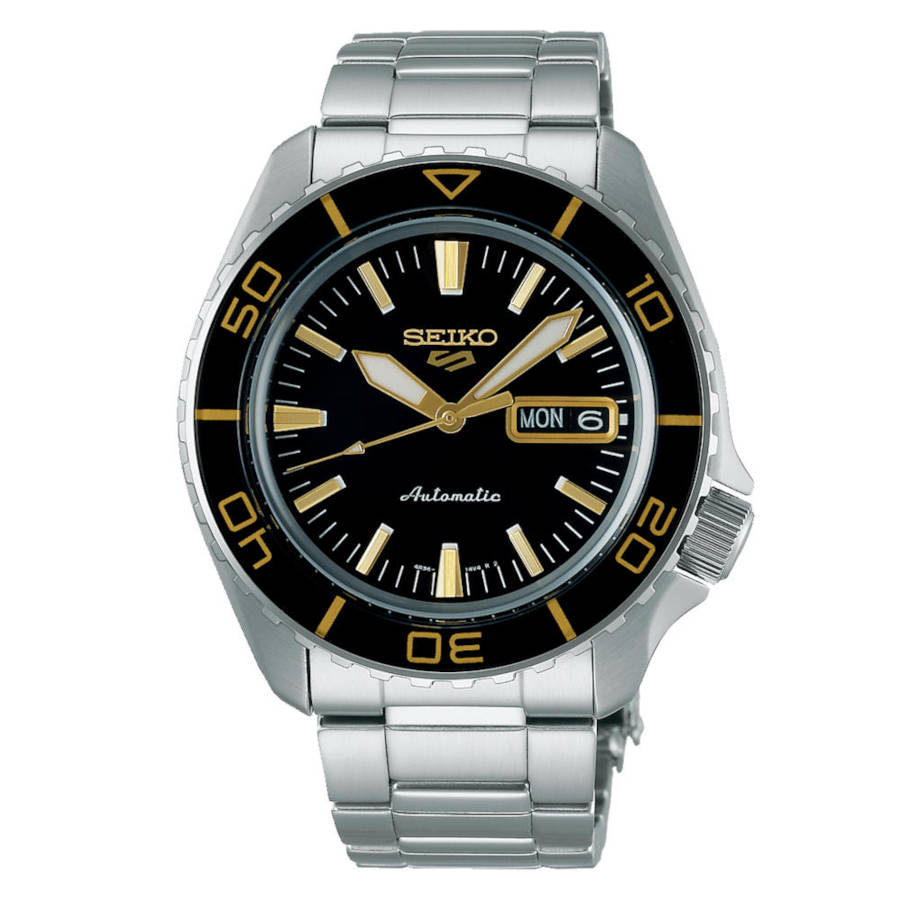 Ένα αυτόματο ρολόι, της σειράς 5 Sports, του οίκου SEIKO, από ανοξείδωτο ατσάλι με μαύρο καντράν.