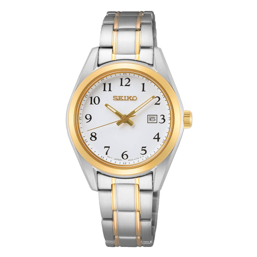 Ένα ρολόι, της σειράς Conceptual, του οίκου SEIKO, από ανοξείδωτο ατσάλι και επιχρυσωμένο ανοξείδωτο ατσάλι με λευκό καντράν.