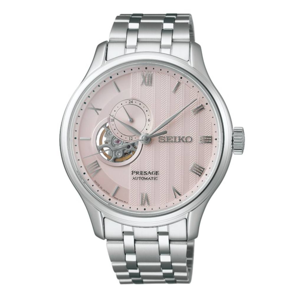 Ένα αυτόματο ρολόι, της σειράς Presage, του οίκου SEIKO, από ανοξείδωτο ατσάλι με ροζ καντράν.