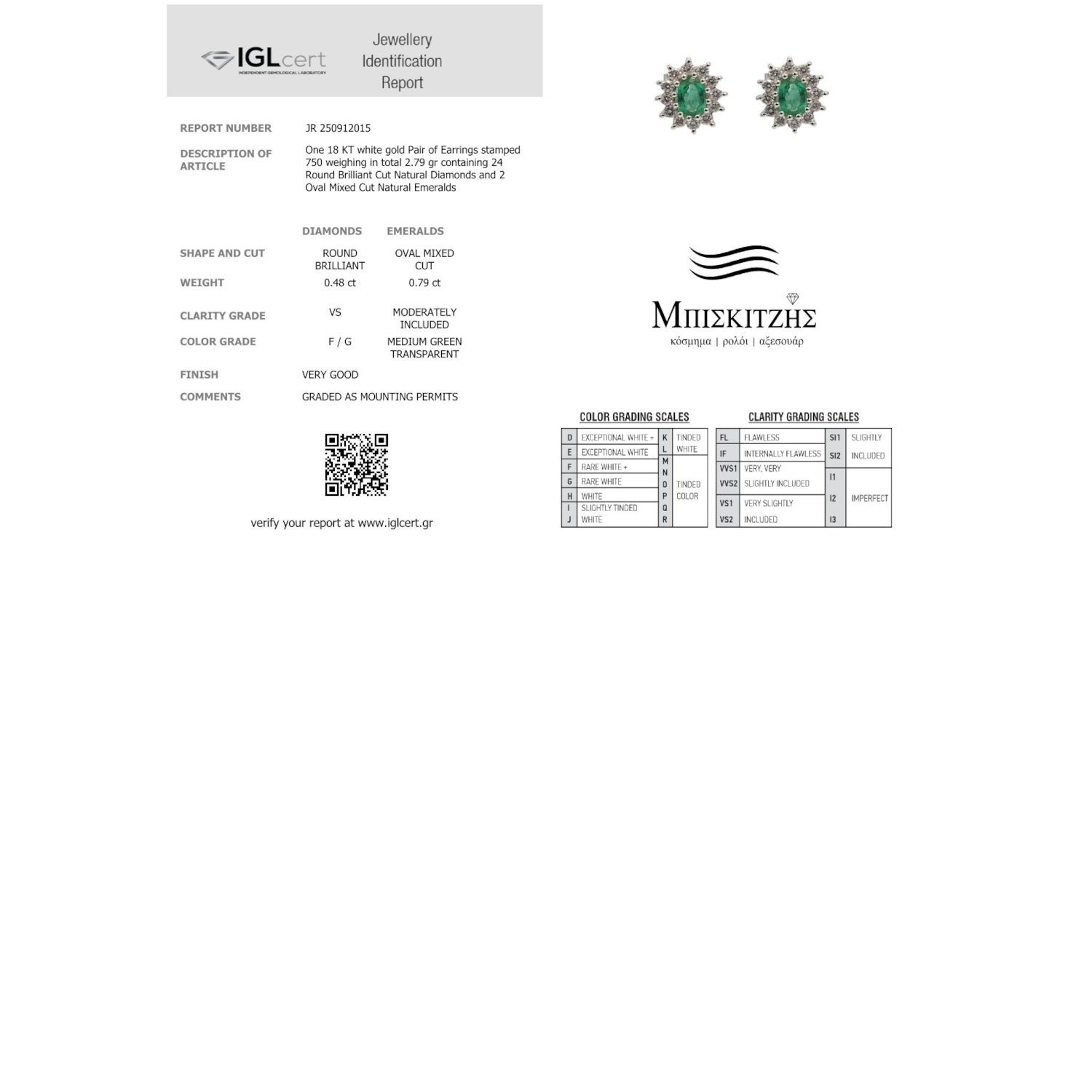 Ετικέτες: 18Κ, Brilliant, Διαμάντι, Λευκόχρυσος, Σκουλαρίκια, Σμαράγδι