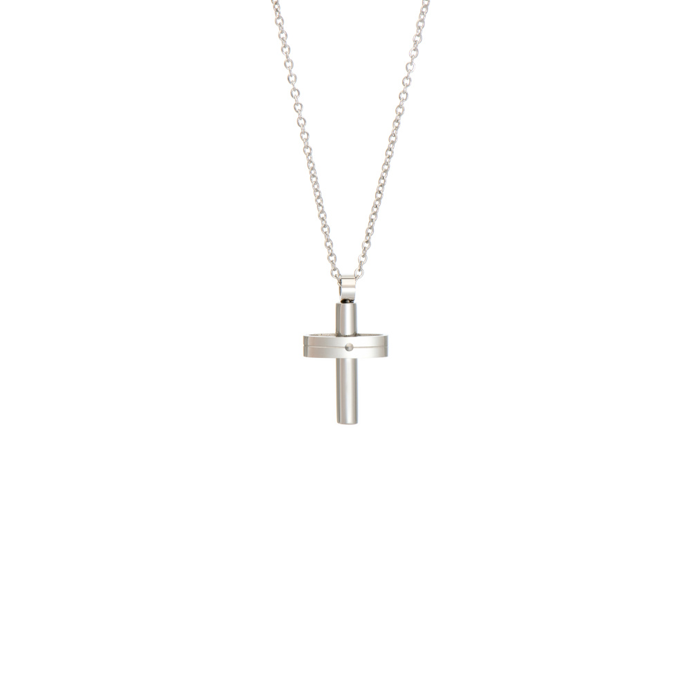 Ένα μοντέρνο ανδρικό κολιέ με σταυρό, της εταιρείας Visetti, από ανοξείδωτο ατσάλι.