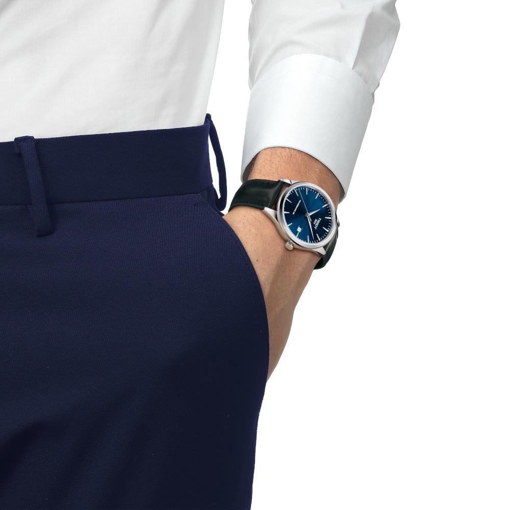 Ένα Ελβετικό ρολόι με αυτόματο μηχανισμό της σειράς Classic Dream, από τη συλλογή T-Classic, του οίκου Tissot, από ανοξείδωτο ατσάλι, με μπλε καντράν και μαύρο δερμάτινο λουράκι. Με κωδικό T158.407.16.041.00