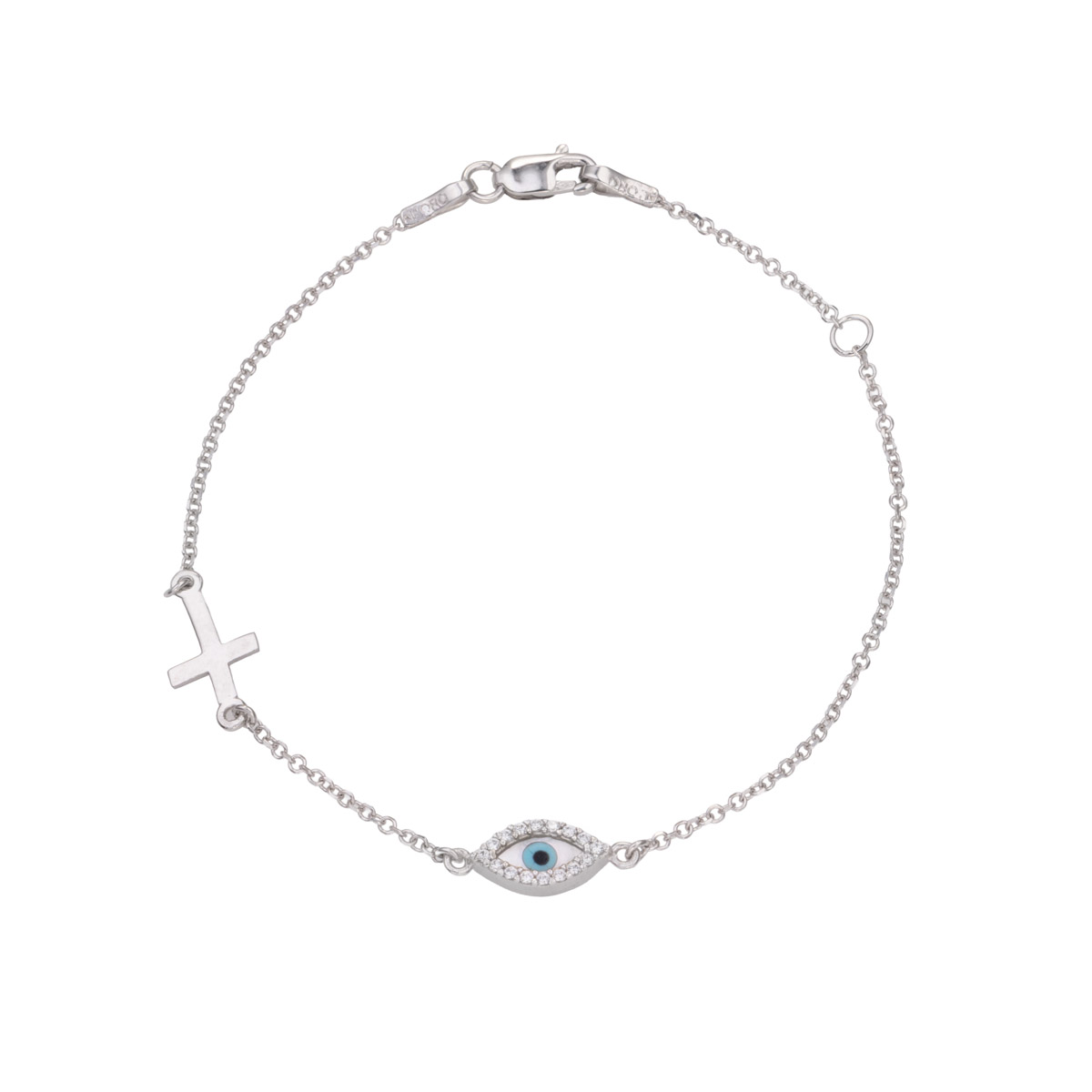 Ένα όμορφο βραχιόλι από Λευκόχρυσο 9 Καράτια με ματάκι από φίλντισι και ζιργκόν.