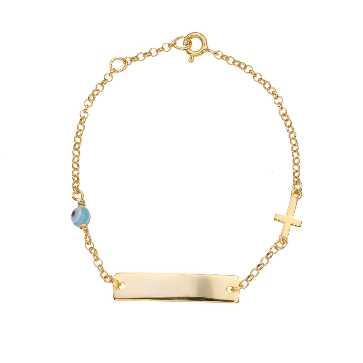 Ένα υπέροχο βραχιόλι ταυτότητα, από κίτρινο επιχρυσωμένο ασήμι 925° με ματάκι.