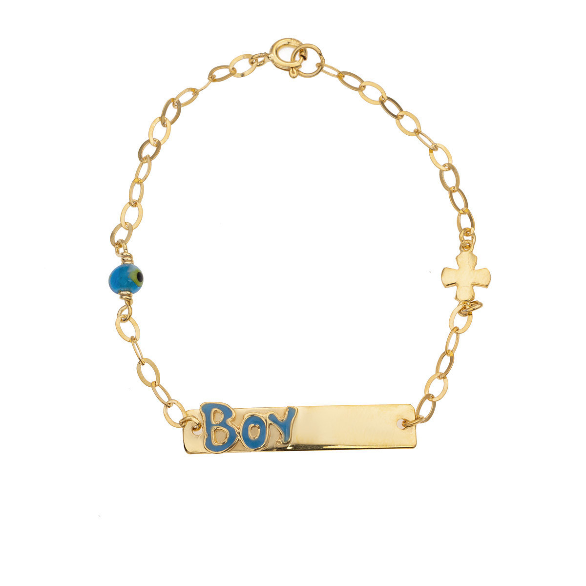 Ένα υπέροχο βραχιόλι ταυτότητα, από κίτρινο επιχρυσωμένο ασήμι 925° με σμάλτο και ματάκι.