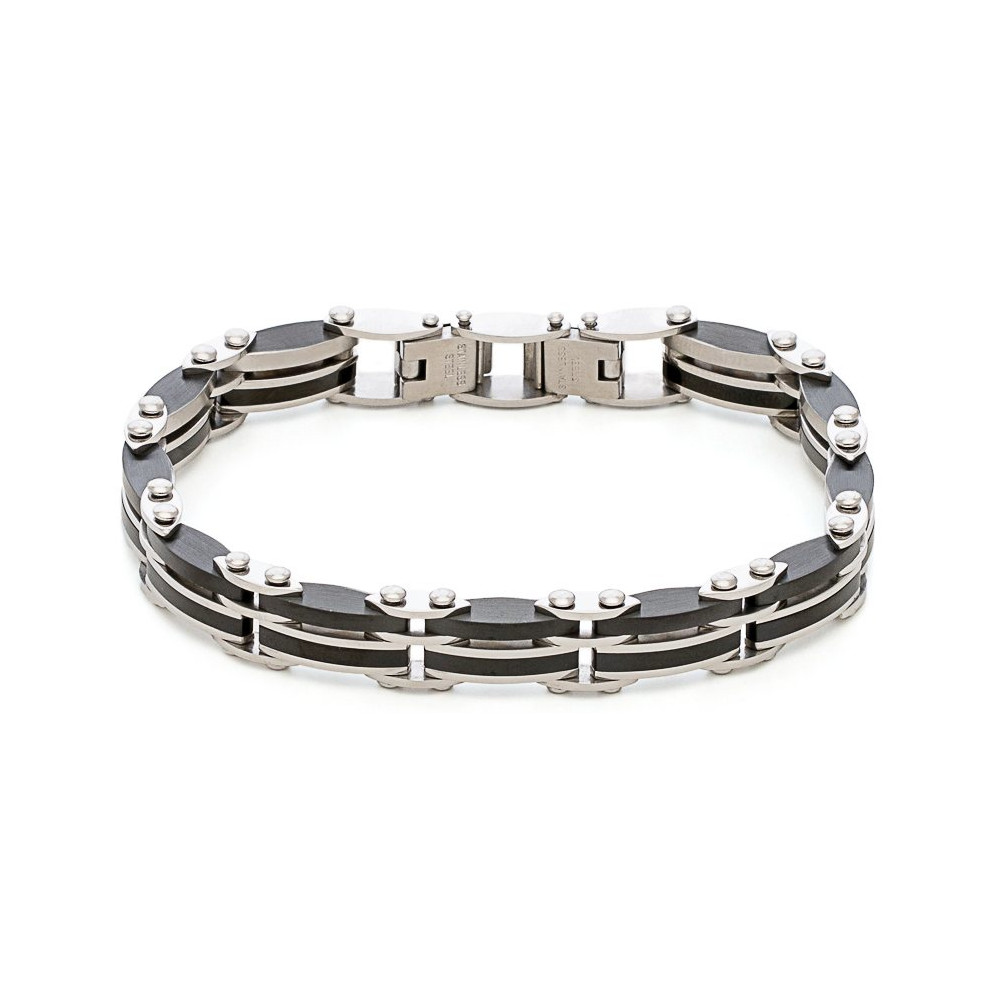 Ένα μοντέρνο ανδρικό βραχιόλι της εταιρείας Visetti, από ανοξείδωτο ατσάλι και μαύρο επιπλατινωμένο ανοξείδωτο ατσάλι.
